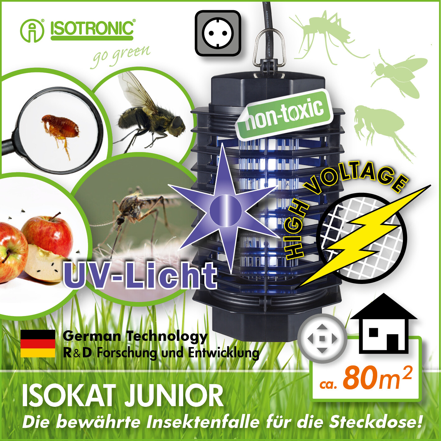 ISOTRONIC UV Insektenlampe Stechmücken mit Hochspannung bekämpfen 80 qm